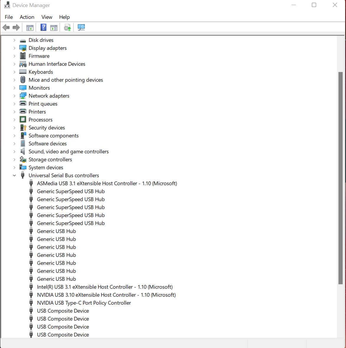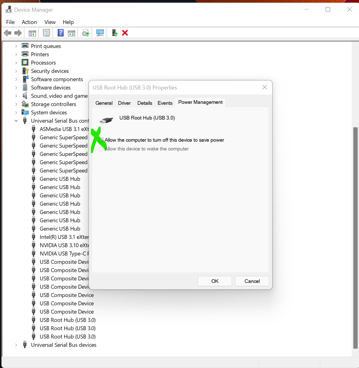 Repeat for all eXtensible Host Controllers, Generic SuperSpeed Hubs, Generic USB Hubs, and USB Root Hubs.