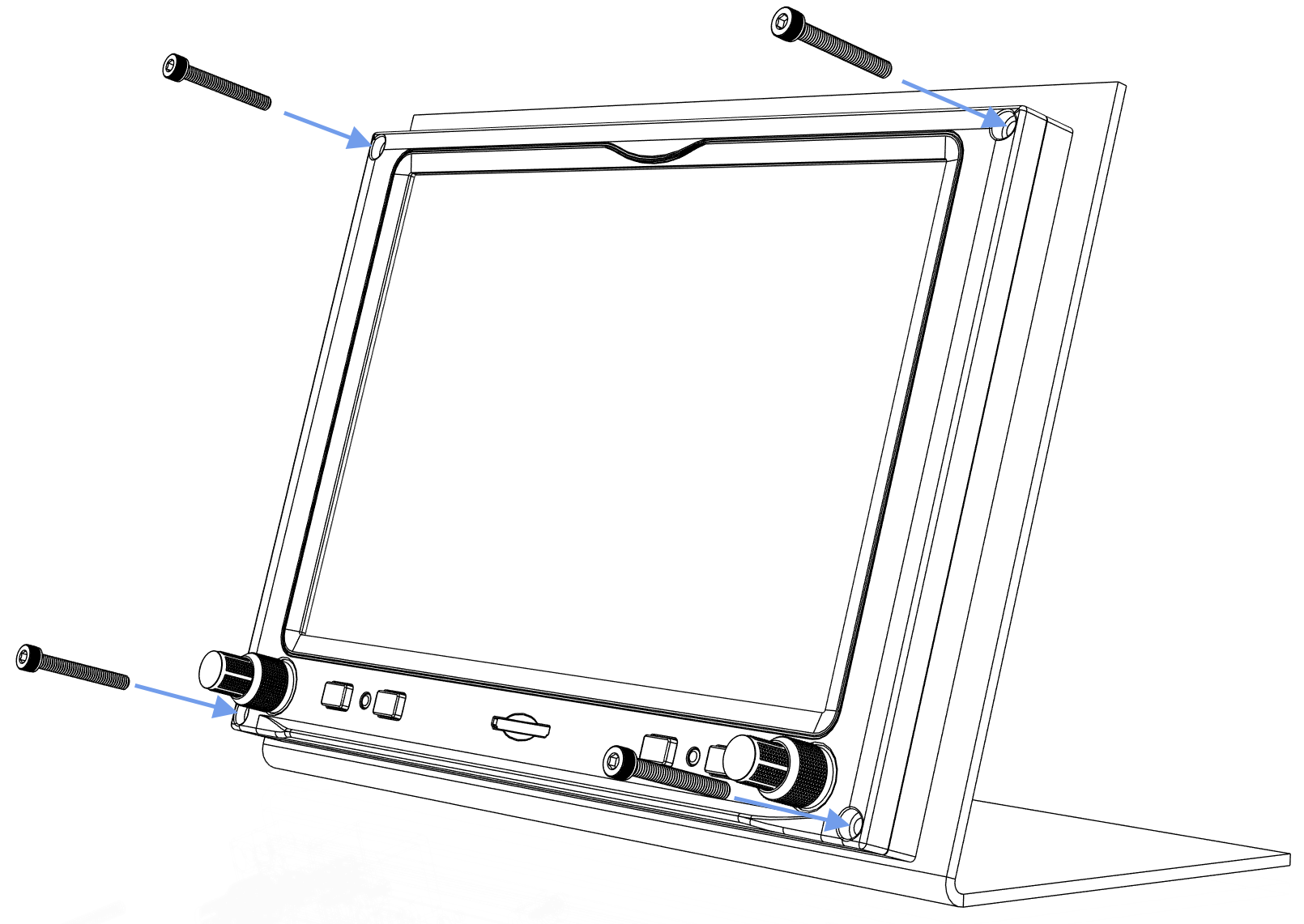 Insert the four M4 x 30mm socket head screws into the four mounting holes of the front corners of the bezel.