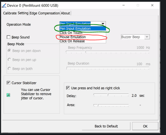 Next to Operation Mode: click the dropdown menu and select "Mouse Emulation"