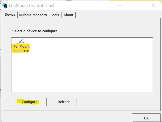 Your PenMount Control Software configuration is complete, click OK to exit.