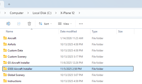 You will see a new folder (G500 Aircraft Installer) located in your X-Plane install folder:
