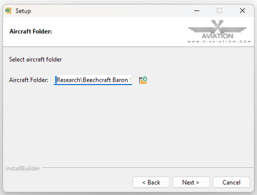 Click the folder icon to advance to the Aircraft Folder selection.