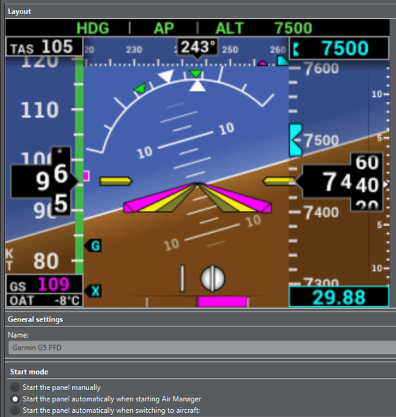 Under "General settings", rename the panel from "Garmin G5" to Garmin G5 PFD. This will help us identify the individual G5 instruments in the future.
