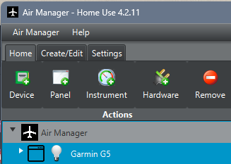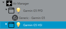 Once this is completed you will see "Garmin G5" added to the panel selector stack on the left side of the Air Manager interface: