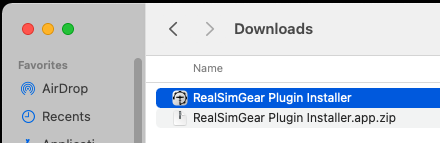 2. Find the file downloaded in step 1, double click on the "RealSimGear_XP-Plugin_Installer.app.zip" file which will extract the "RealSimGear_XP-Plugin_Installer.app.