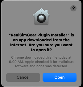 3. Double click on "RealSimGear_XP-Plugin_Installer.app" which will start the install.