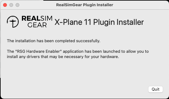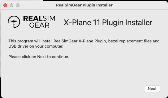 Please make sure your RealSimGear hardware is connected to your Mac and powered on before starting the install.
