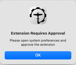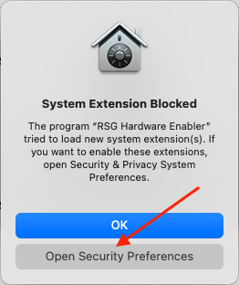 2. You will likely be presented with a "System Extension Blocked" message. Choose "Open Security Preferences"