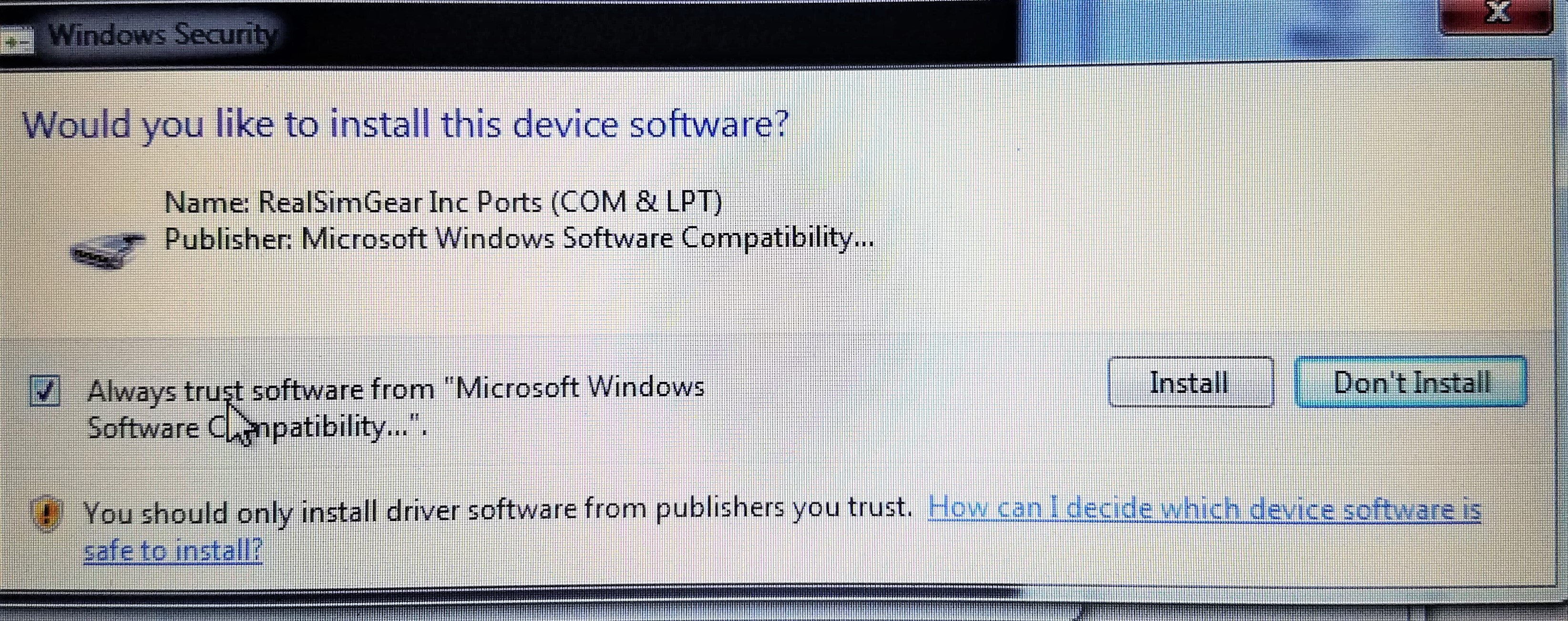 After the Microsoft Redistributables are installed, you may also get a number of black screens that will pop up while the installer installs the RealSimGear USB drivers.