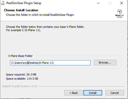 Will install the RealSimGear Plugin into ..\X-Plane\Resources\plugins\