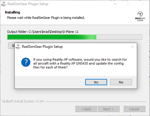 If you chose the GTN650/750 option, the installer will search for any aircraft that already have Reality-XP installed and configured and update the file to hide the Reality-XP bezel. If you do not want the installer to do this, simply choose "No" ...